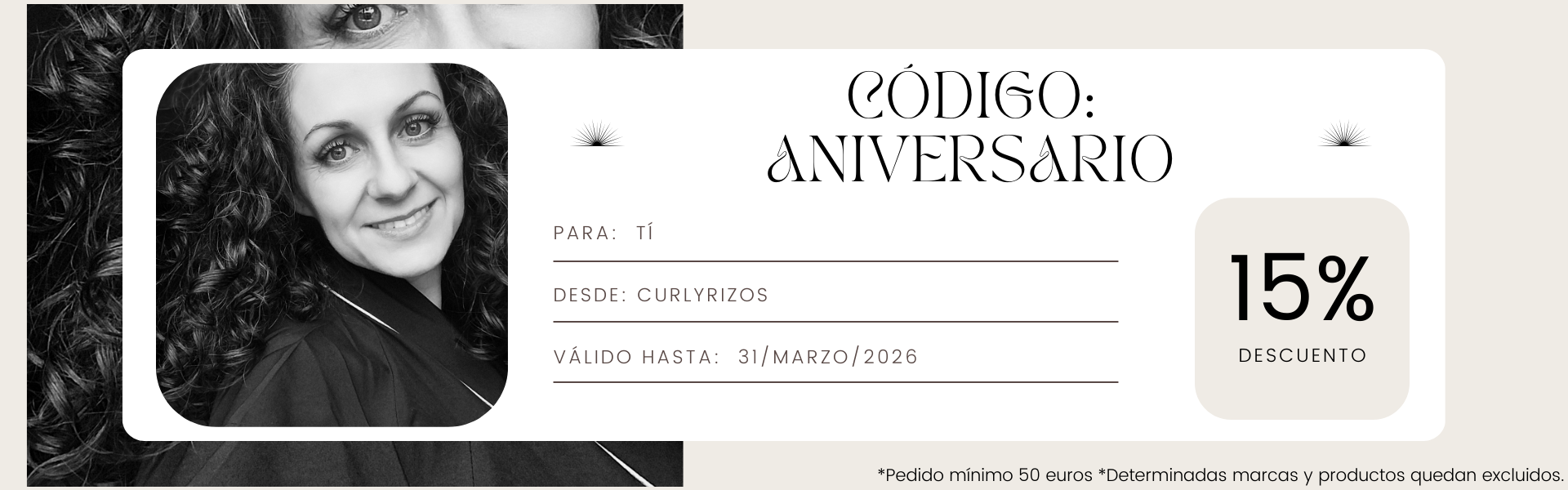 15% código: ANIVERSARIO *Pedido mínimo 50 euros *Determinadas marcas quedan excluidas.