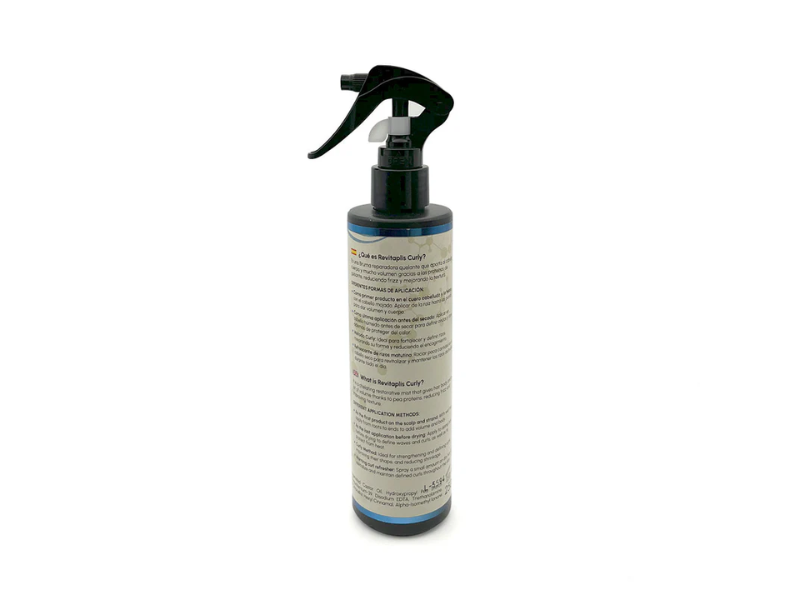 Como refrescante de rizos por las mañanas: Si notas que tus rizos pierden definición durante el día, puedes rociar Revitaplis Curly sobre el cabello seco para revitalizar los rizos y mantenerlos con aspecto fresco y definido.